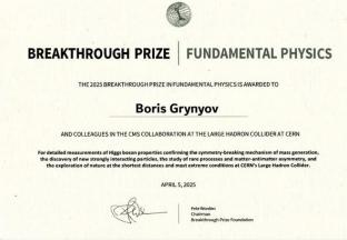 Директору ІСМА, академіку НАН України Борису Гриньову та доктору технічних наук, професору Андрію Бояринцеву було вручено дипломи лауреатів The 2025 Breakthrough Prize in Fundamental Physics (https://home.cern/news/pr...).